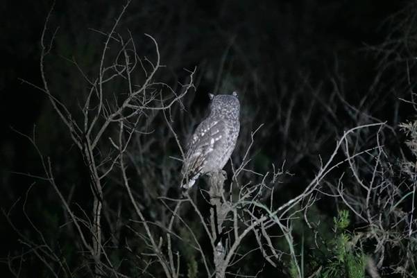 A slightly shy Spotted Eagle Owl (Photo Credit: Saffron Banks)