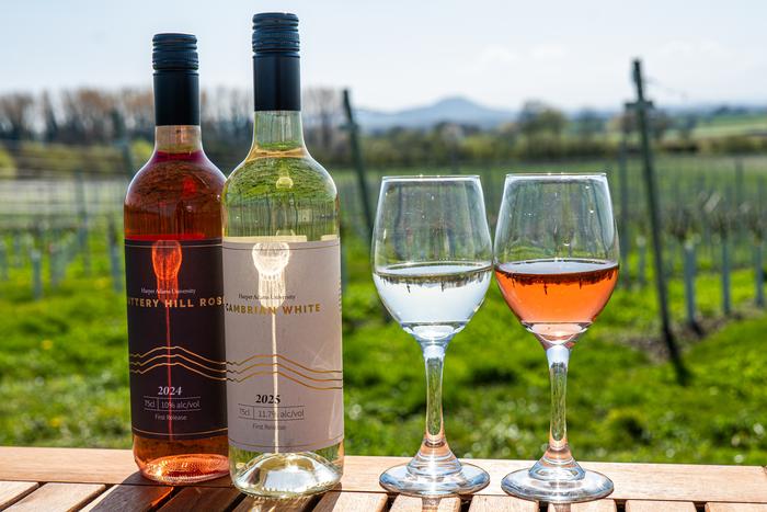 The new Buttery Hill Rosé is one of the first two commercially available wine ranges produced from grapes grown on the University’s own estate in Edgmond, Shropshire.